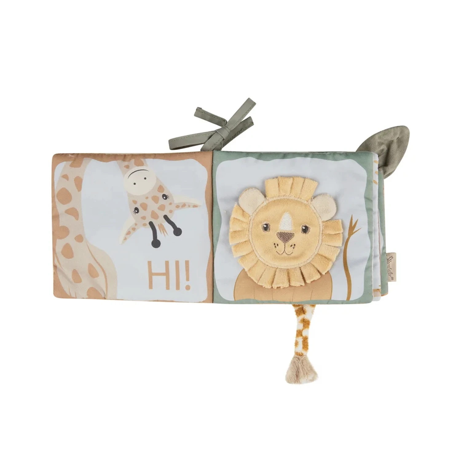 Features: Multiple soft pages with vibrant safari-themed illustrations, 3D appliqués, and a dangling “tail” detail.