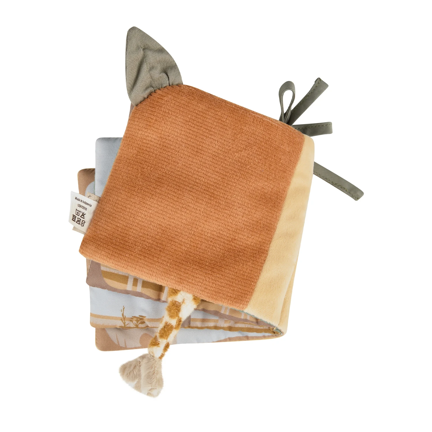 Tactile Material Mix: Features a rich landscape of textures, from the extra-soft plush giraffe head on the cover to the ribbed orange corduroy back and a playful 3D leaf for curious fingers to explore.