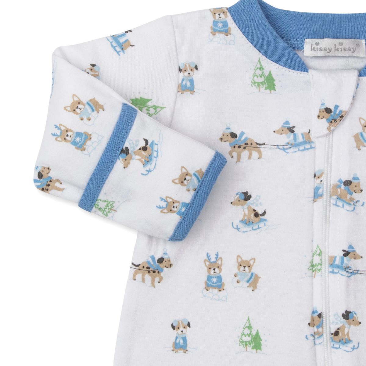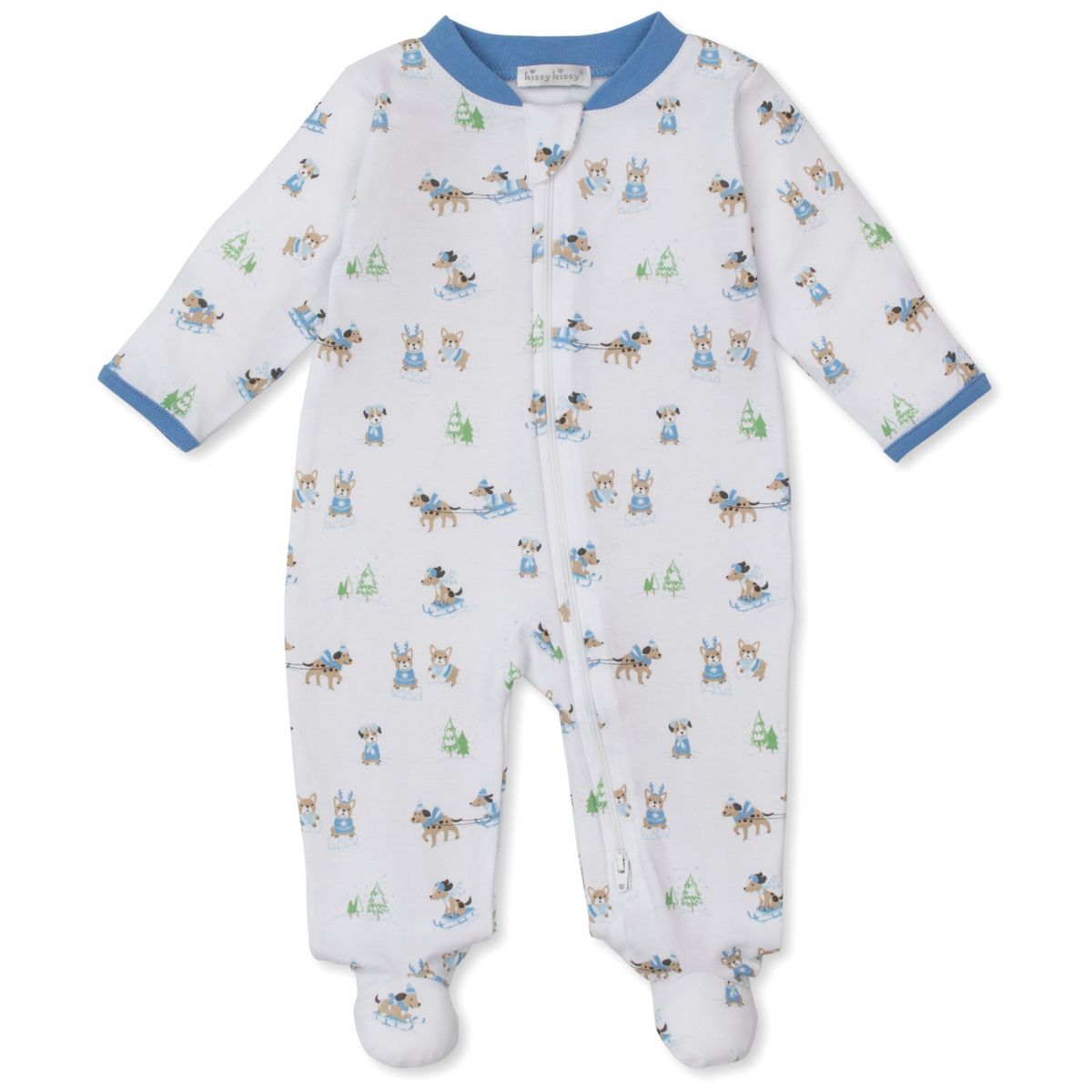 Puppy’s Sleigh Riding Fun Blue Zip Footie