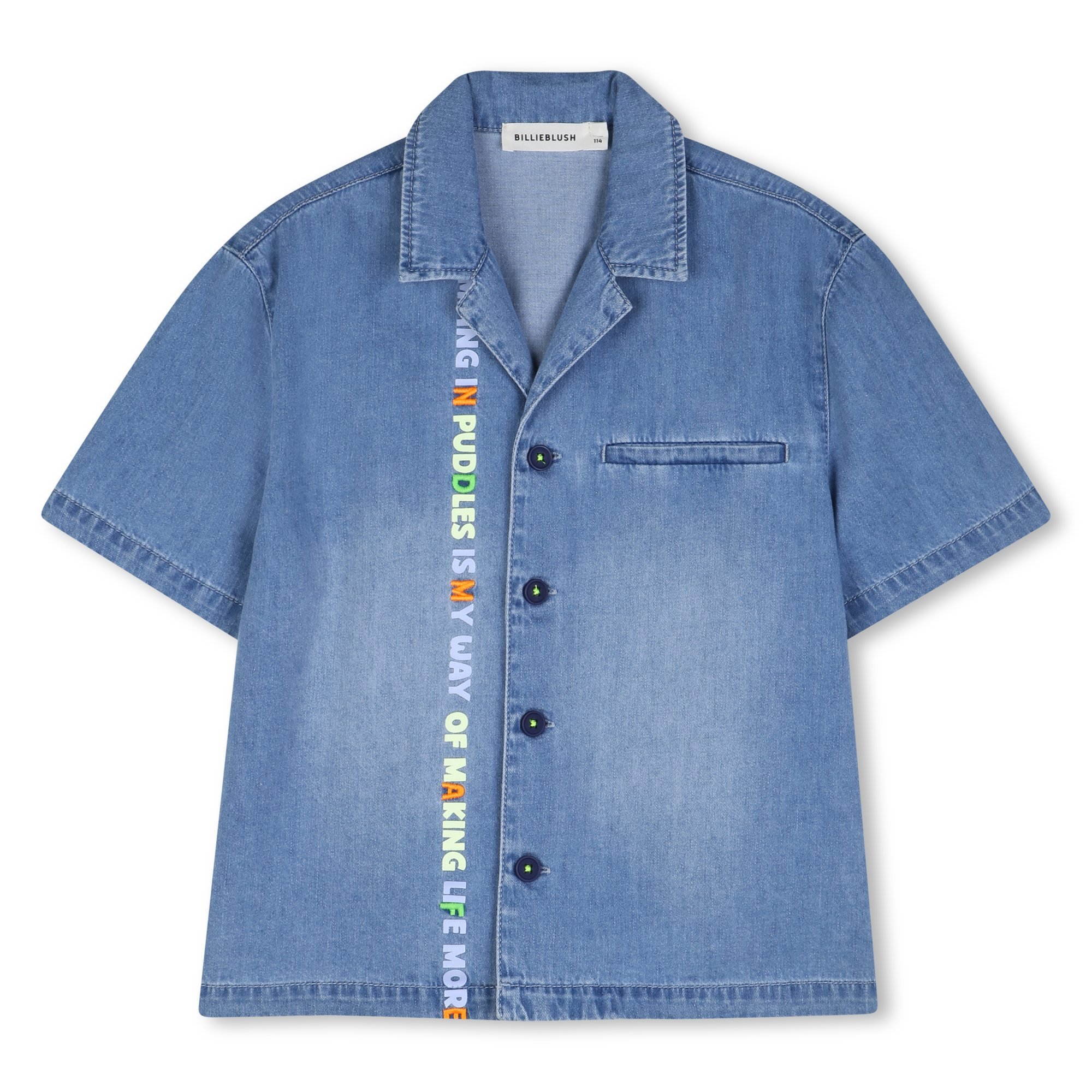 A breath of lightness rests on this Billieblush denim shirt, an essential piece for bright and dreamy days. Soft to the touch and chic in design, it is adorned with an embroidered illustration that tells a story full of tenderness and fantasy. This shirt combines retro charm with modern energy, making it a cheerful staple for any young explorer’s wardrobe.