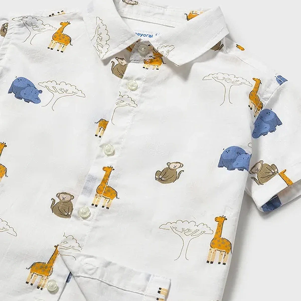 “Wildly” stylish! This crisp white button-down from Mayoral is ready for your little one’s next big adventure. Combining a classic tailored silhouette with a playful animal print, it is the perfect choice for summer parties or family outings.