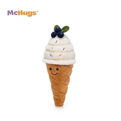 Keep your cool with this delightful Amuseable Blueberry Ice Cream! This charming soft toy features a golden, stitched waffle cone with a friendly embroidered smile. Topped with a generous swirl of creamy vanilla plush, it’s finished with colourful sprinkles and a bunch of plump, navy blueberries with green leaf detail.