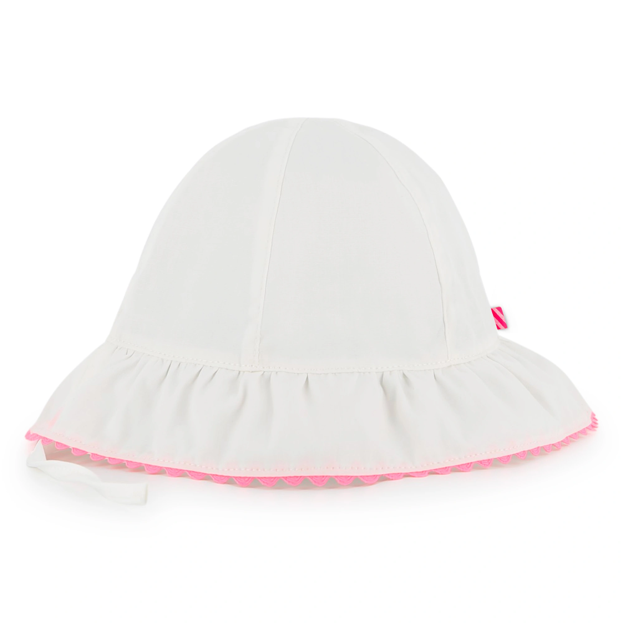 Playful Ruffled Brim: Designed with a feminine ruffled edge and finished with a vibrant neon pink ric rac trim.