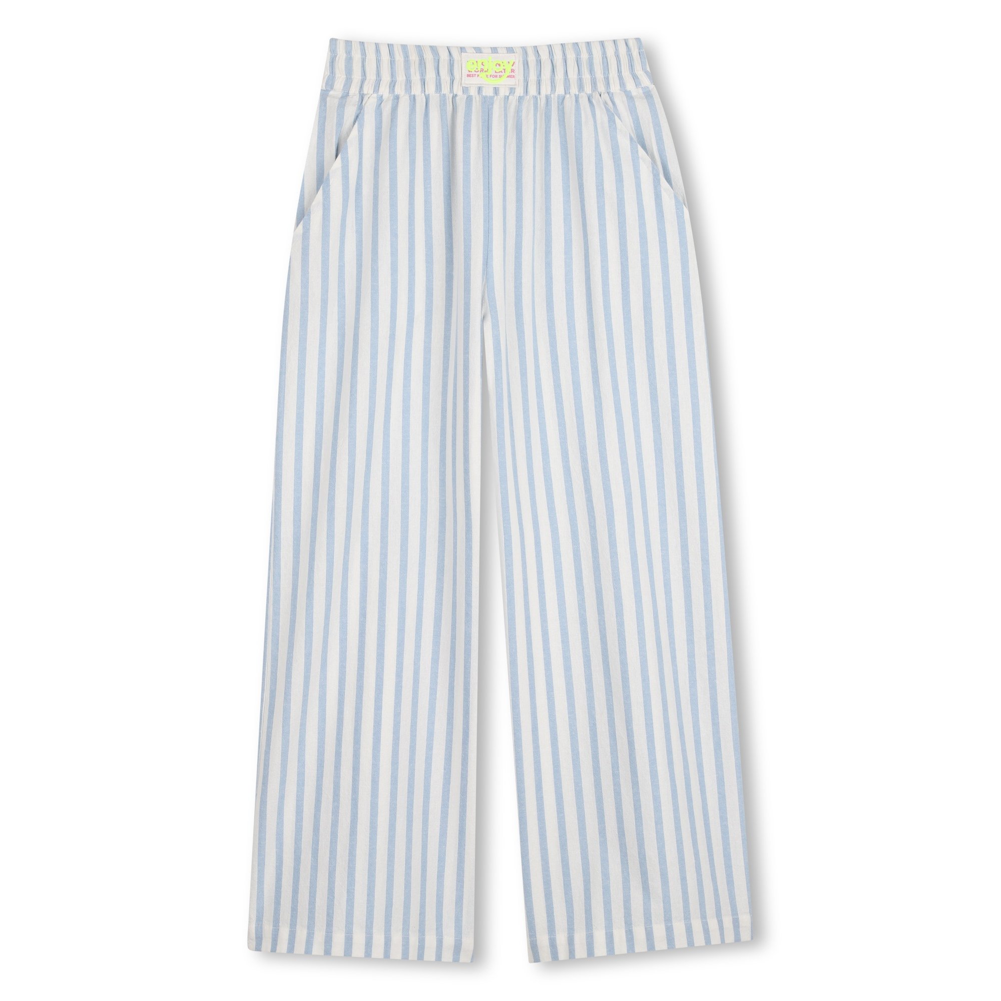 Combine comfort and style with these cotton trousers by Billieblush, featuring a fresh pinstripe print and a roomy wide-leg fit. Designed to accompany every discovery with charm and resistance, these trousers offer the perfect balance of chic design and practical ease for all-day play.