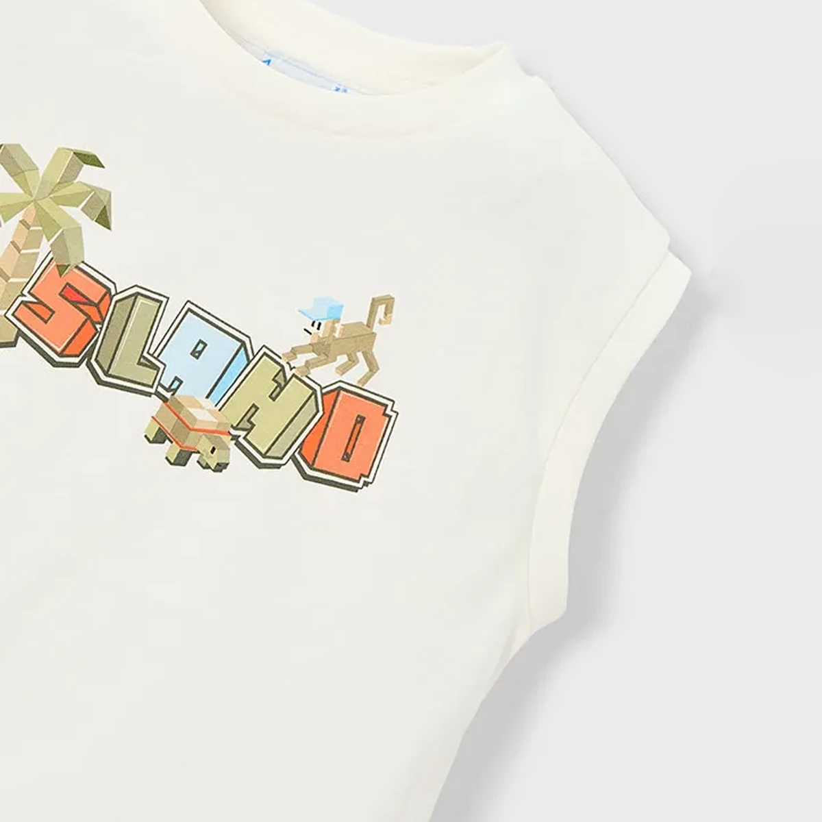 Invite your little dreamer to escape to a pixelated paradise with this charming cream tank top. Featuring a whimsical isometric “ISLAND” graphic—complete with a cheeky monkey in a blue hat and a friendly wandering turtle—it is the perfect attire for sun-drenched garden explorations or imaginary tropical quests. Crafted from the softest cotton jersey, this sleeveless piece ensures your little explorer stays cool and cosy throughout their grandest summer adventures.