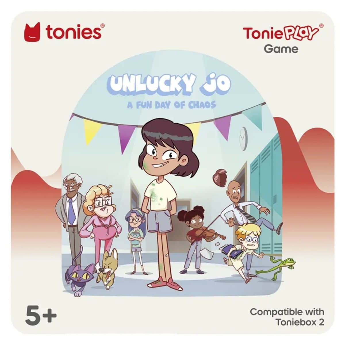 This is an interactive Tonieplay Game designed exclusively for the Toniebox 2. By placing the Tonieplay Disc and Controller on the box, players step into Jo’s shoes to make choices, meet friends, face grumpy teachers, and tackle hilarious challenges. The vivid artwork captures the fun chaos, showing Jo covered in green paint and surrounded by a cast of stressed adults, a cat, and even a frog!.