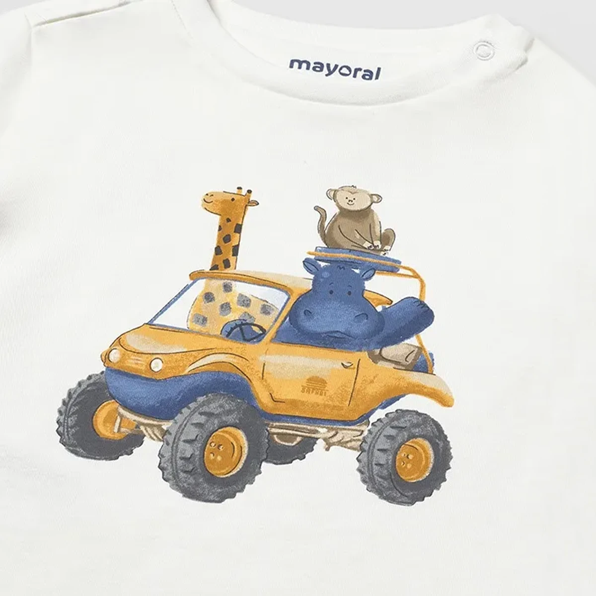 Adventure awaits with this charming Mayoral tee! Designed for little explorers, this shirt features a whimsical safari-themed graphic that brings a touch of wild fun to any everyday outfit. Crafted from pure cotton, it’s a soft and reliable staple for all-day comfort.
