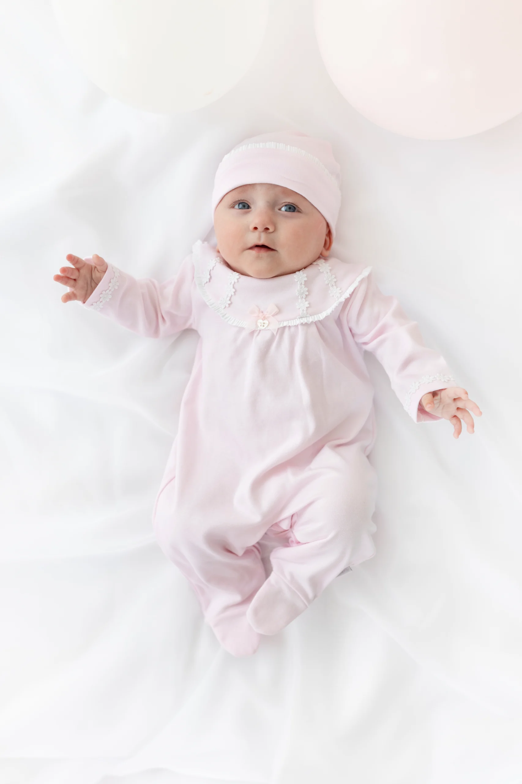 Set Includes: All-in-one velour babygrow and a matching ribbed hat.