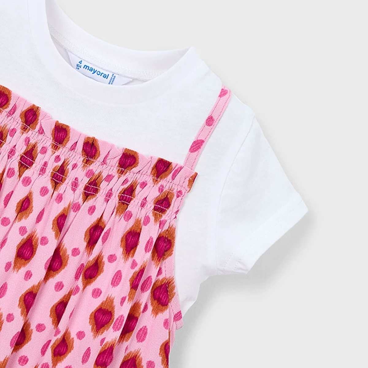 The Perfect Layered Look: Features a built-in white short-sleeved t-shirt layered under a pinafore-style dress, offering a “ready-to-go” look with extra sun coverage.