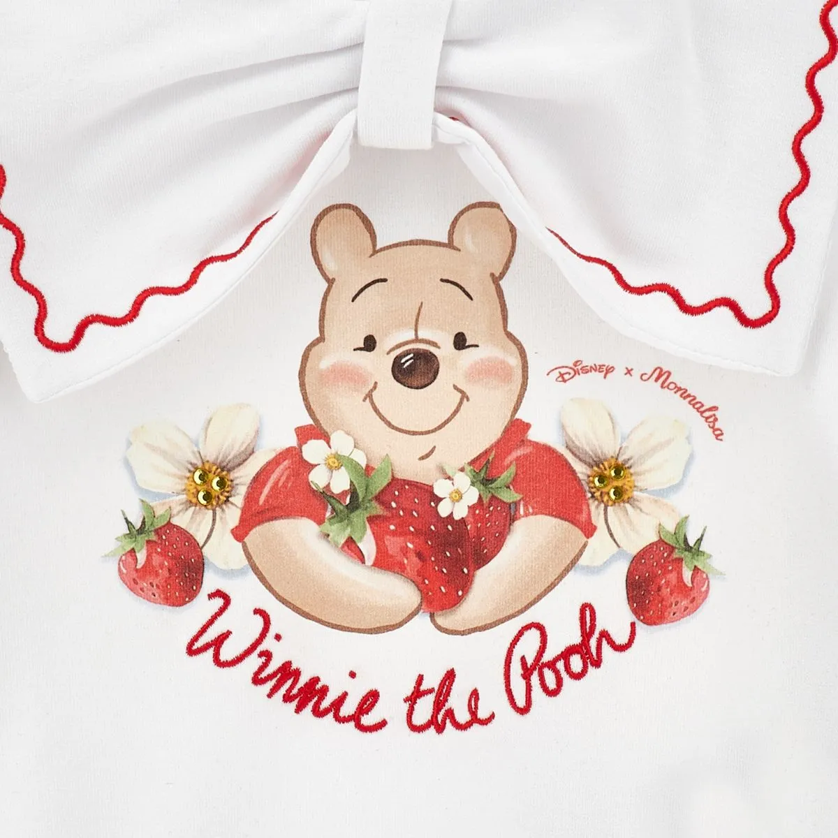Charming Disney Graphic: Features an adorable Winnie the Pooh illustration, where Pooh is seen holding vibrant strawberries surrounded by blossoms and a delicate “Winnie the Pooh” script.